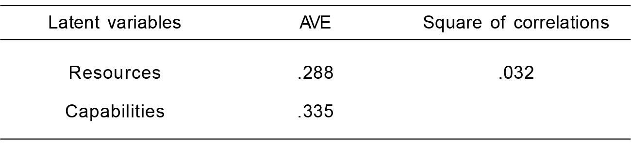 de la literatura, se construyó la variable latente «recursos» medida a través de cinco preguntas y «capacidades» a través de seis ítems. Para la prueba de hipótesis se realizó un análisis de ecuaciones estructurales de máxima
